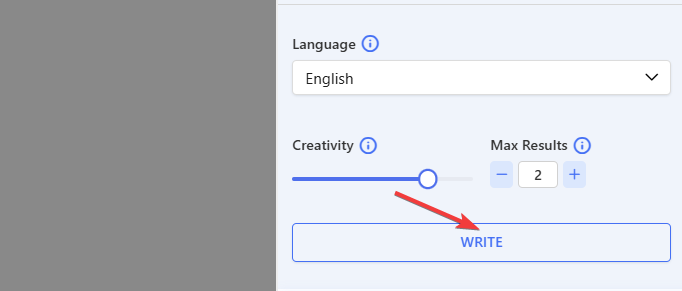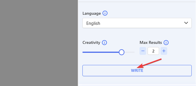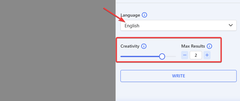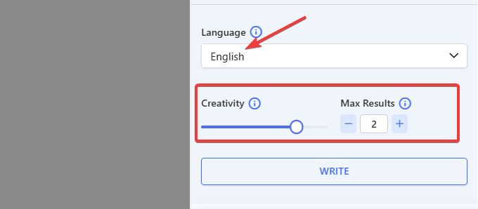2. Set Key Metrics: Set the language, creativity level, & number of results to get the desired output.