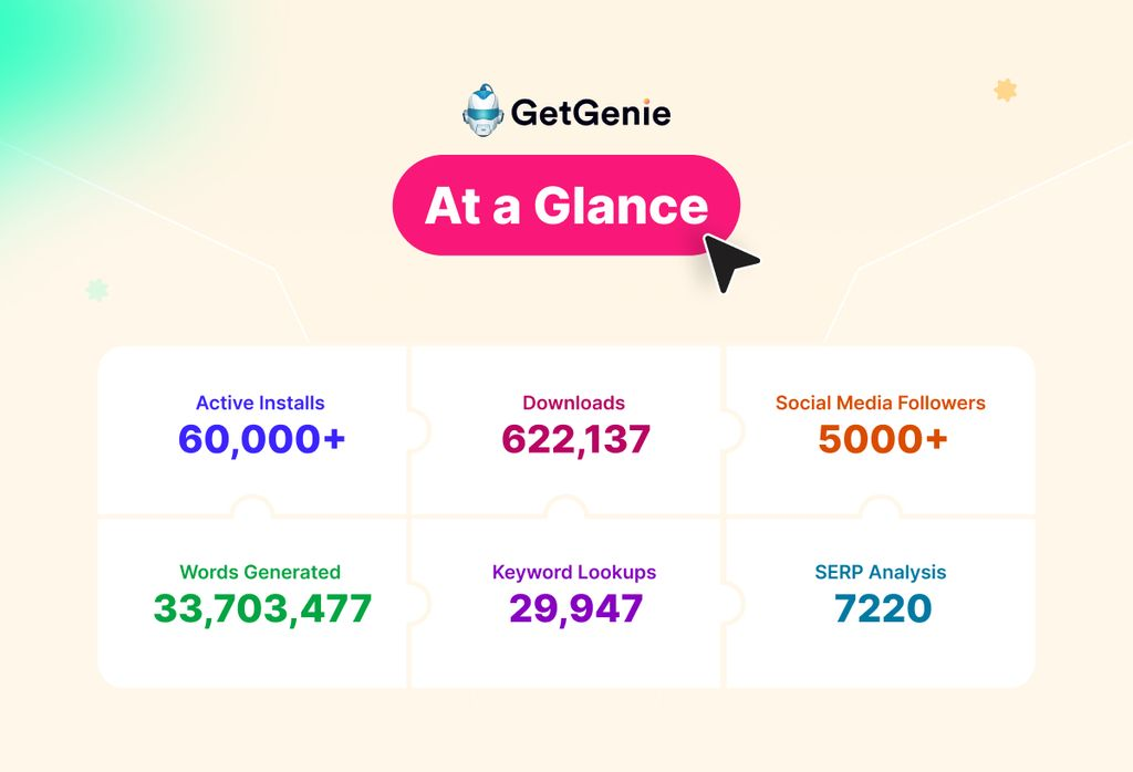 GetGenie, the AI WordPress & SaaS content tool, witnessed 500% growth in its active installs. Users have downloaded it over 600,000 times to date. Other key achievements in 2025 include: