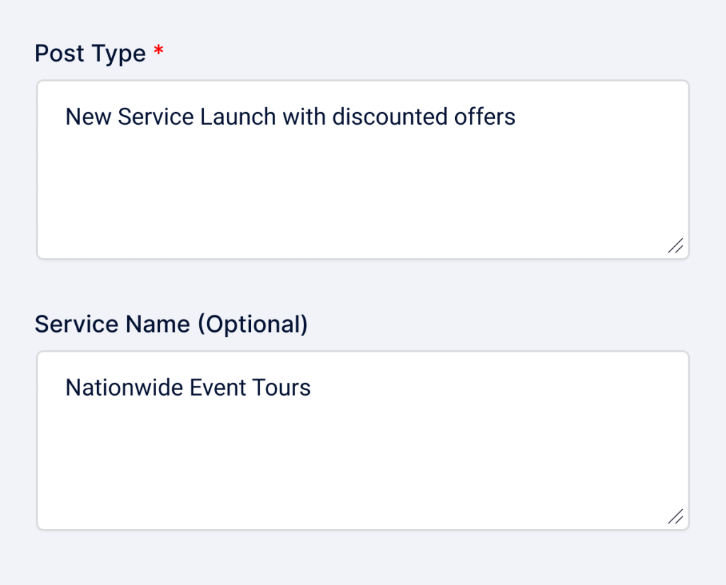 Mention your local post type in particular. Add details on whether posts relate to offers, new launches, service highlights, or anything else. Also, highlight the service your post relates to.